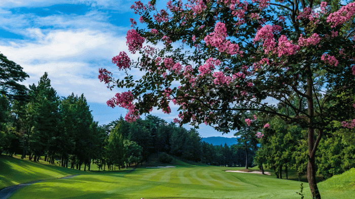 Many pine trees enhance the quietness of the course. Each hole is flat and has enough distance to enjoy exciting shots.