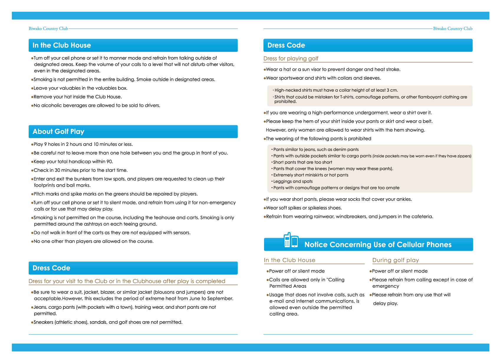 - Smoking is not permitted on the course, including the teahouse and carts. Smoking is only permitted around the ashtrays on each teeing ground.